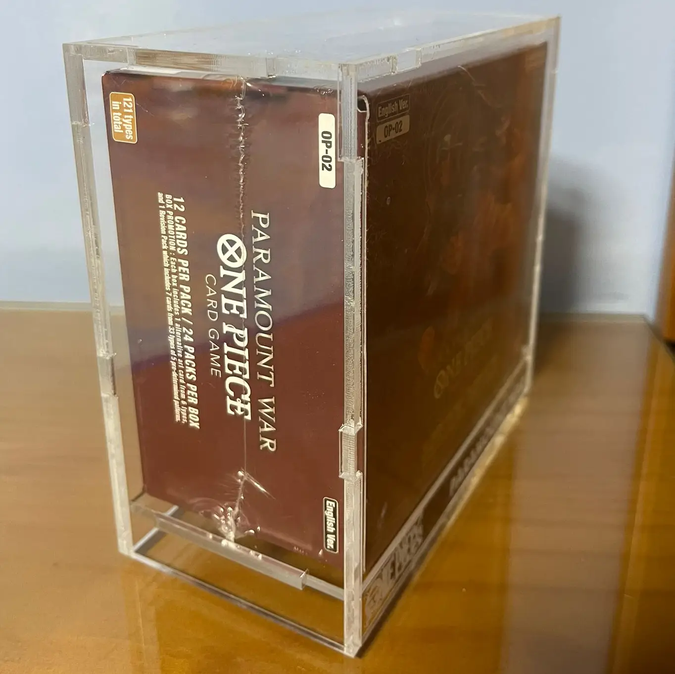 La expansión OP-02 (Paramount War) es una de las más icónicas y valiosas del juego de cartas de One Piece. Cualquier coleccionista sabe que el valor de una caja sellada depende exclusivamente de la integridad de su precinto de fábrica. Nuestra caja de acrílico rígido de 4mm actúa como un escudo inalterable, manteniendo la caja de 24 sobres aislada de agentes externos y presiones accidentales en la estantería.