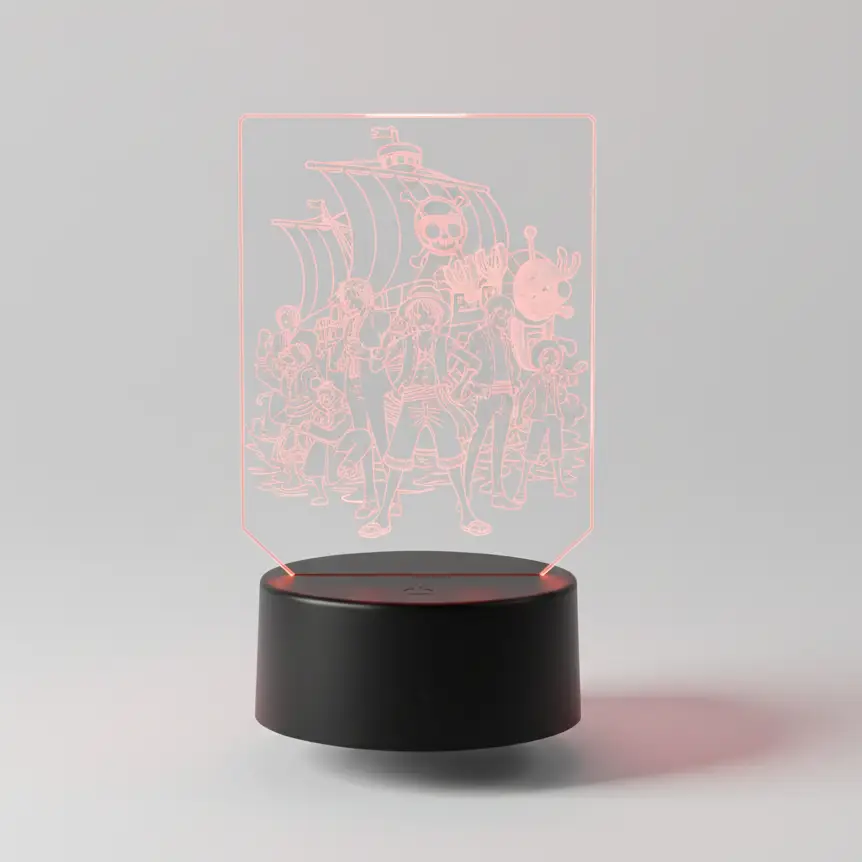 Basándonos en el estilo Line Art (silueta), transformamos cualquier imagen —desde los protagonistas de One Piece o Dragon Ball hasta tu propia foto— en una placa de metacrilato de alta calidad que parece flotar en la oscuridad.